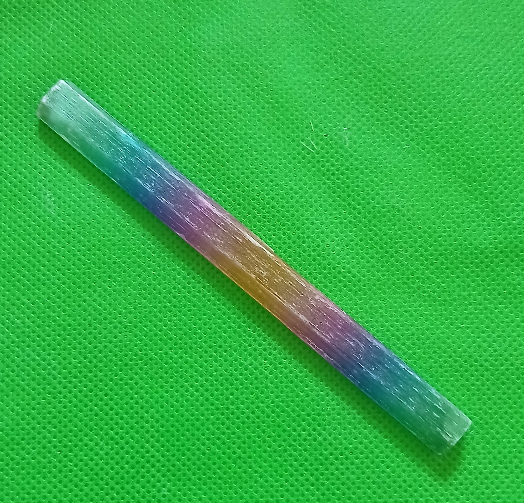 Selenite is known as the Stone of Liquid Light, instantly clearing stagnant or heavy energy from the aura, chakras, and surrounding space. The rainbow aura coating enhances this effect, weaving frequencies of joy, harmony, and multidimensional alignment into your energetic field. Its wand shape allows energy to be directed with precision, making it ideal for healing work, ritual, and intentional clearing.
